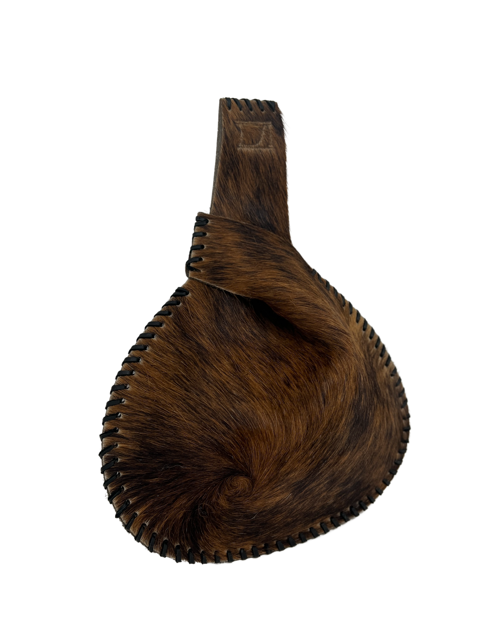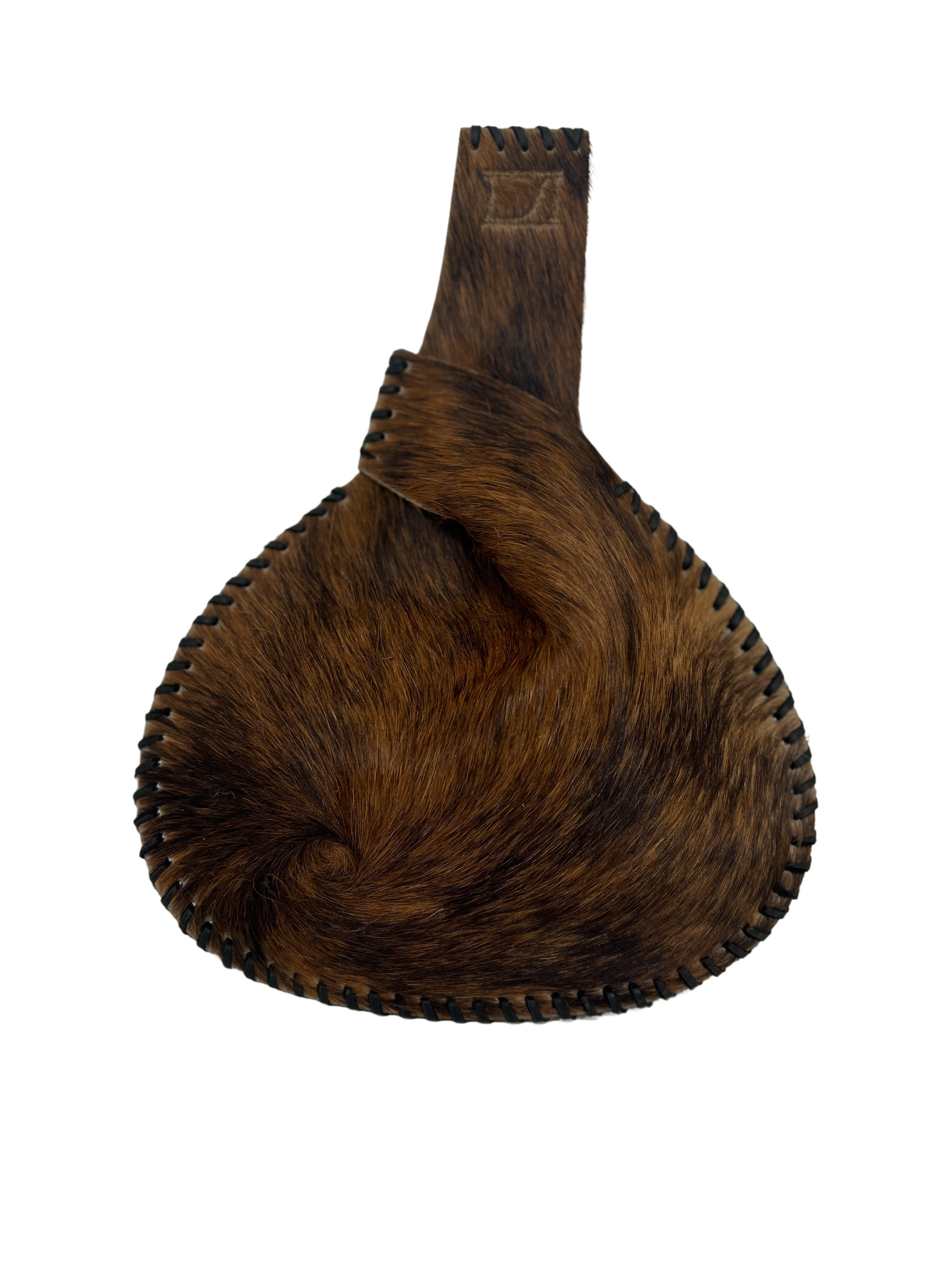 "Hideout" Mini Canteen Clutch is hand crafted in a heavy weight FULL hair on cowhide in an exotic brindle style.