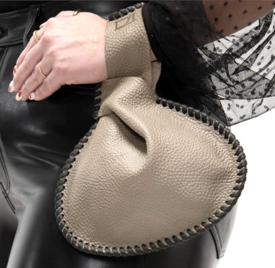 "Putty" Mini Canteen Clutch is hand crafted in a medium weight leather featuring a natural pebble grain and smooth matte finish.
