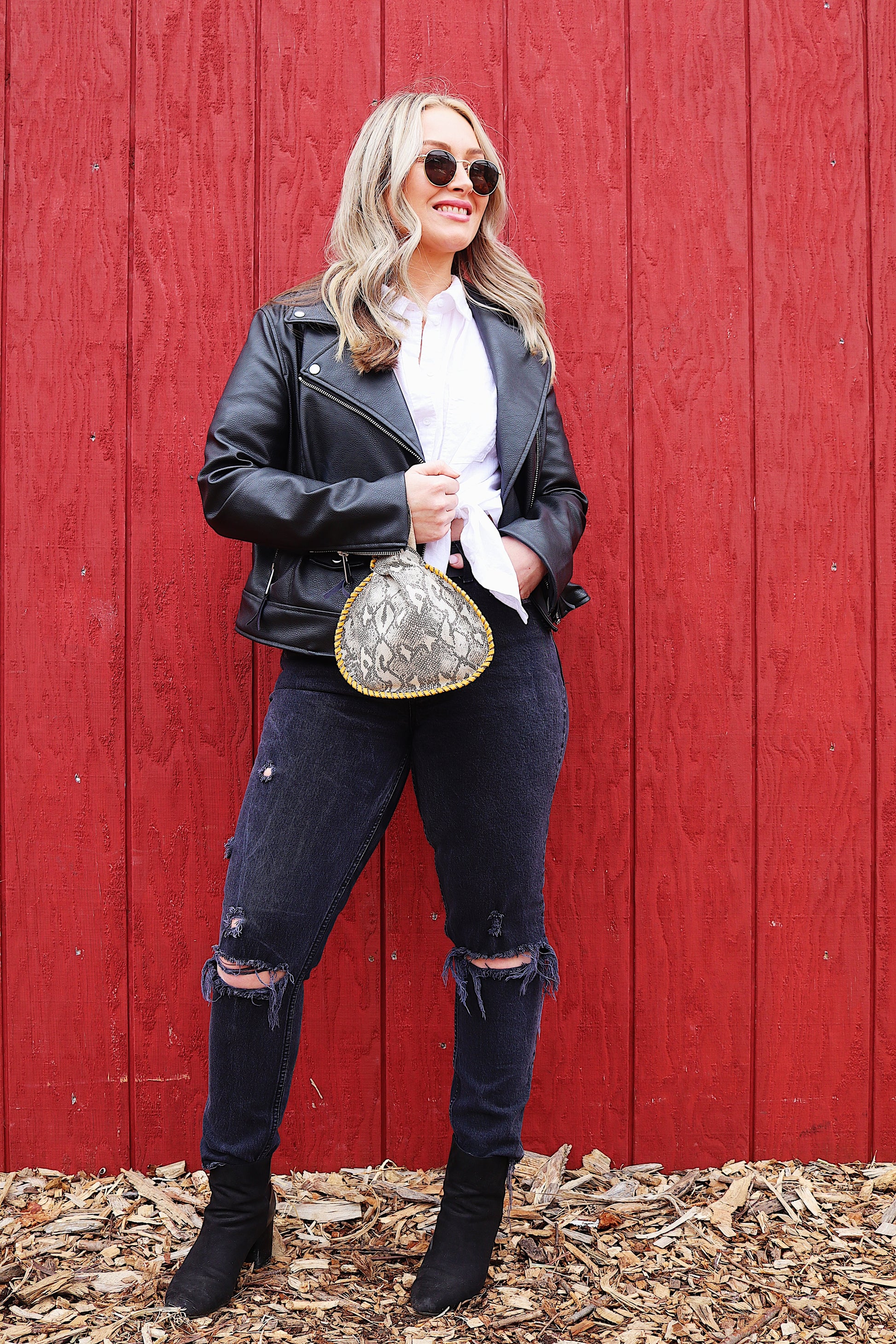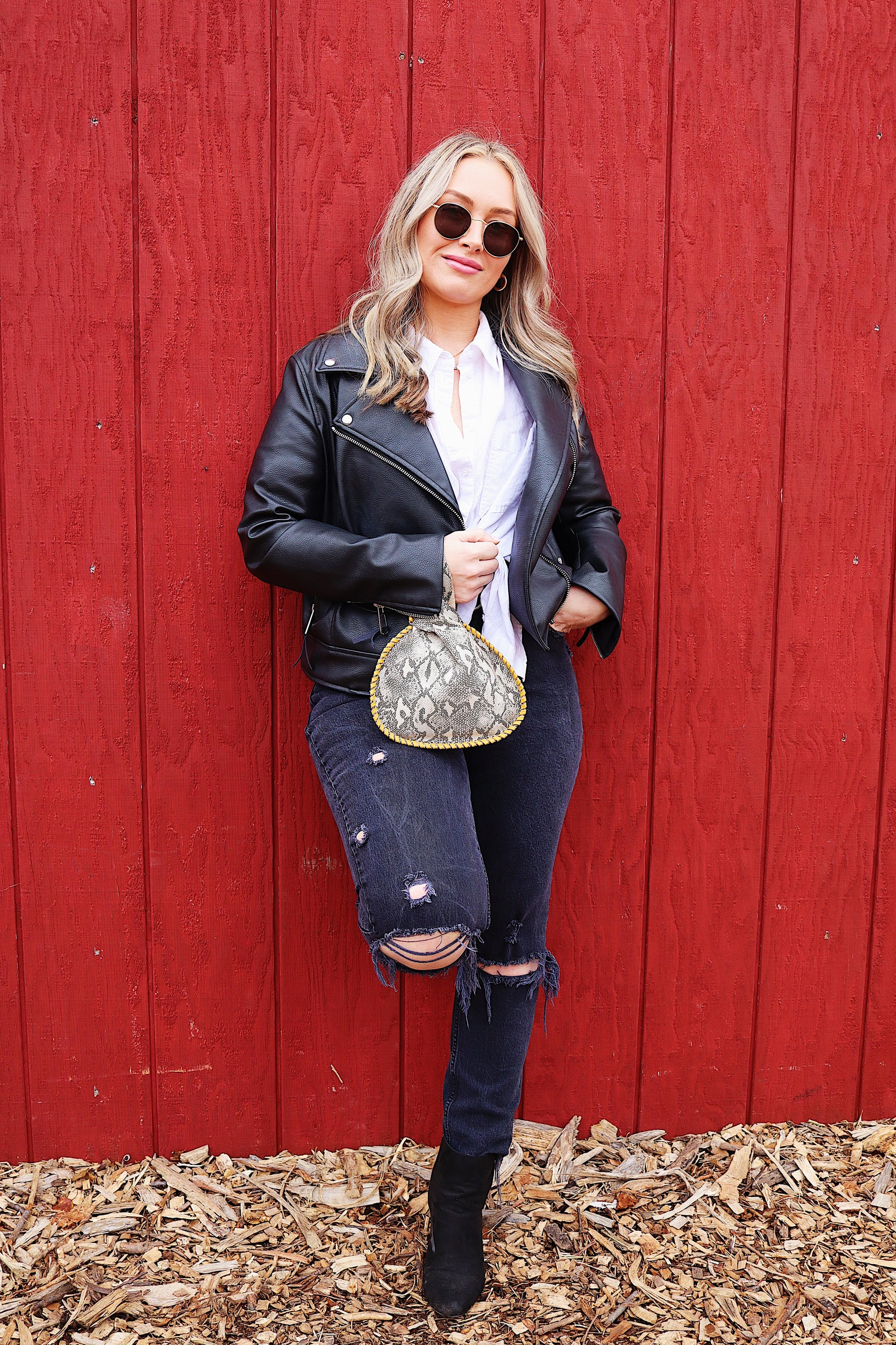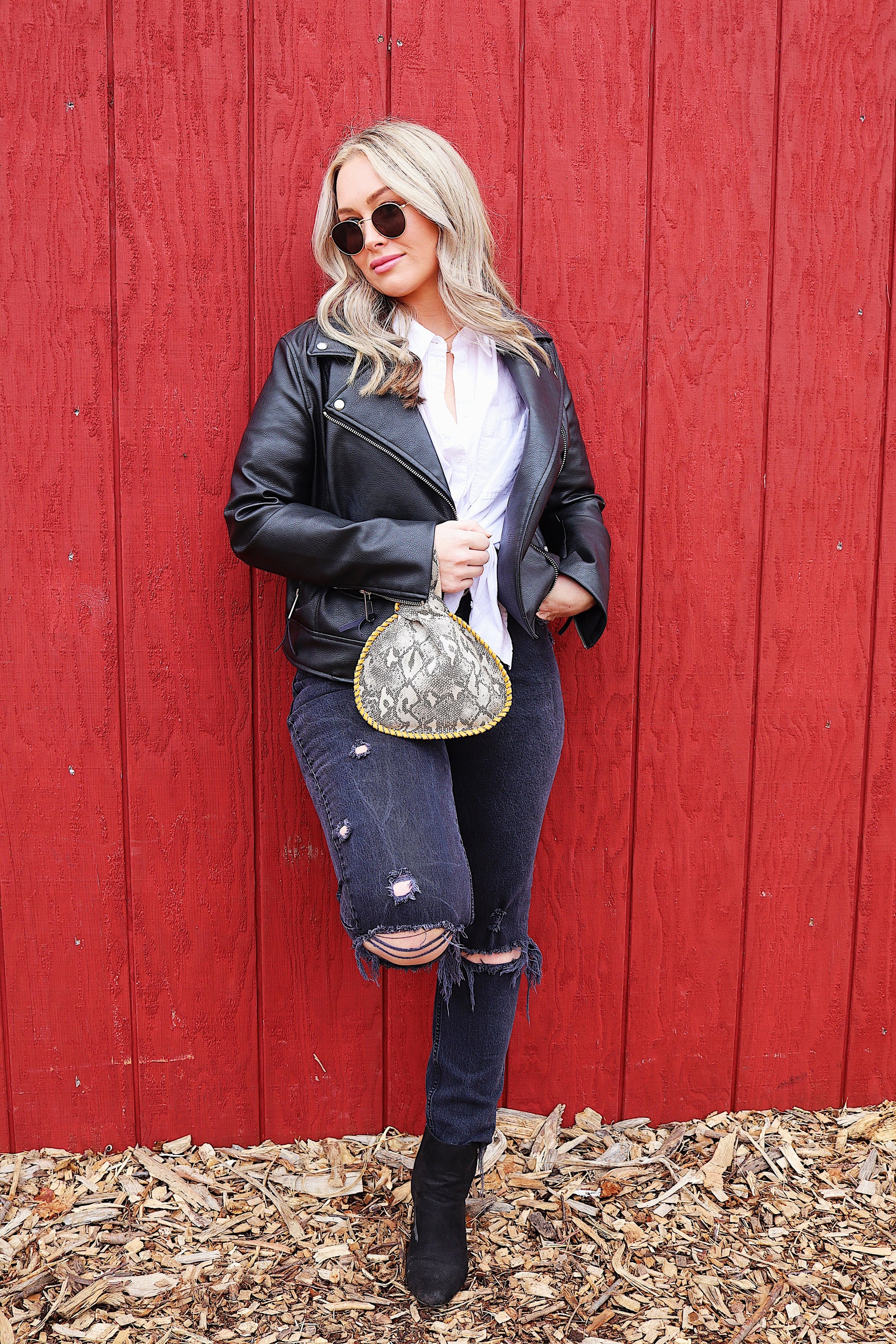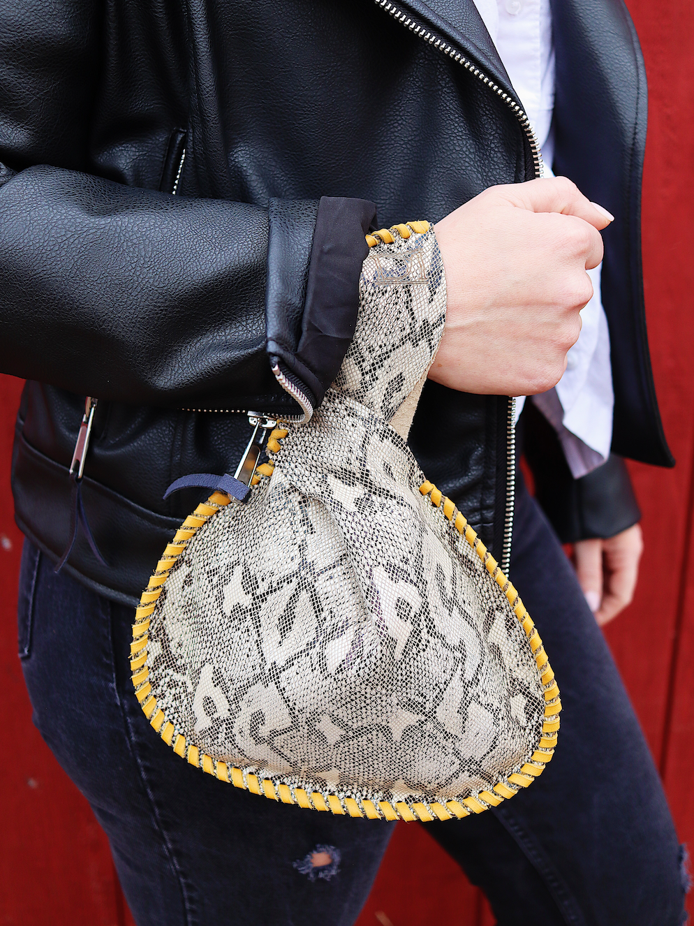 "Venom" Mini Canteen Clutch is hand crafted in a medium weight leather featuring a printed snakeskin pattern with a subtle luster finish.